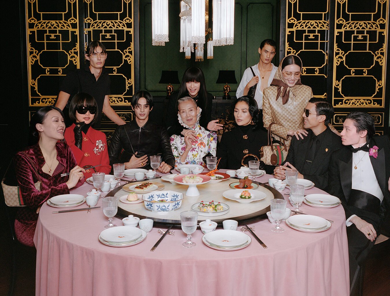 Esa tensión entre la individualidad y la pertenencia es el hilo conductor que atraviesa The Gathering, la nueva narrativa visual con la que Gucci explora las dinámicas de las relaciones modernas. Lejos de la rigidez de las campañas de moda tradicionales, aquí la cámara se convierte en un invitado más a la cena, capturando la intimidad de un elenco que personifica el concepto de la “familia elegida”. Hay algo profundamente cinematográfico en la forma en que nos relacionamos hoy. Creamos nuestros propios elencos. En esta campaña, rostros como la actriz Ni Ni y el actor Song Wei Long no solo portan prendas; habitan un espacio de confianza. Junto a Davika Hoorne y Chantavit Dhanasevi, la dinámica visual se aleja del posado estático para adentrarse en el movimiento fluido de la interacción humana.